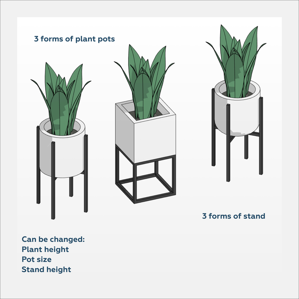 Parameters: Plant height, materials, planter sizes, planter visibility, planter height.